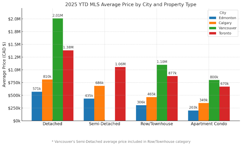 2025 YTD MLS Housing Market Comparison – Edmonton, Calgary, Vancouver & Toronto